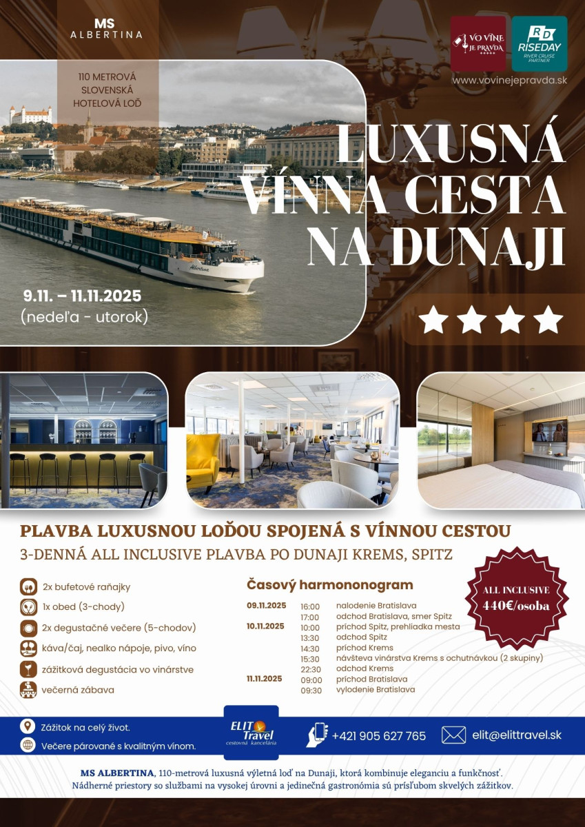 3-denná all inclusive luxusná plavba loďou MS Albertina spojená s vínnou cestou 11/2025